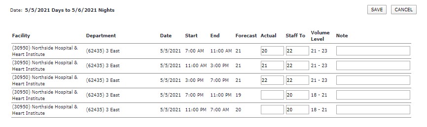 Editing census is entering or changing the numbers for Staff To (the potential Census expected) and Actual Census (the actual occupancy of the unit). The numbers entered here are used when calculating the Percent Difference between Scheduled and Target staff in the Daily Roster.