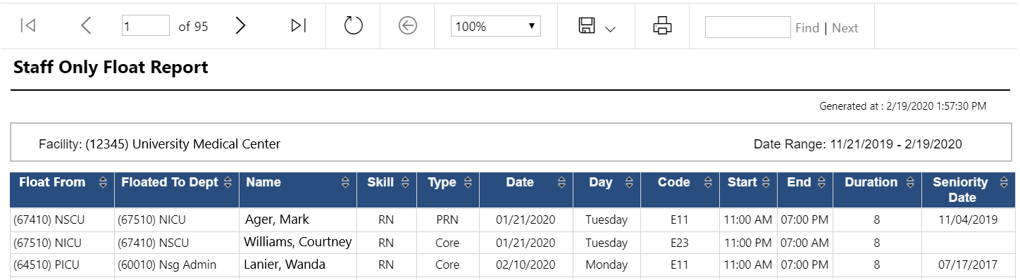 The Staff Only Float Report simplifies and standardizes reporting of shift float information. If staff reports are activated for your facility and configured to allow
