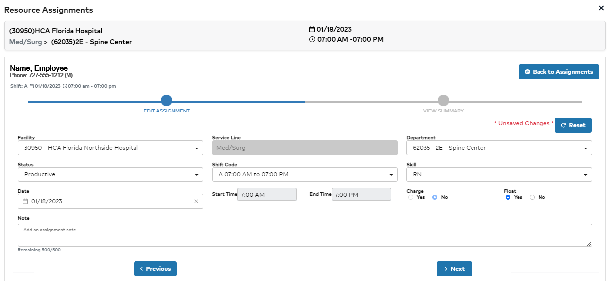 - Note: The example above includes steps for floating an employee to cover an entire shift. If the employee was floated to cover a portion of a shift, the original assignment may be split between departments.